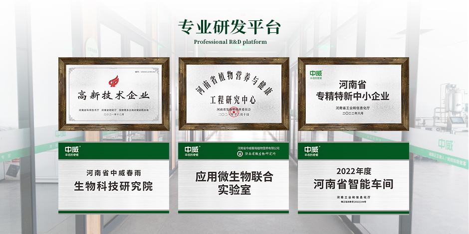 國家高新技術企業、河南省“專精特新”中小企業、“河南省植物營養與健康工程研究中心”,與西安交通大學、陜西省微生物所聯合建設“應用微生物聯合實驗室”。