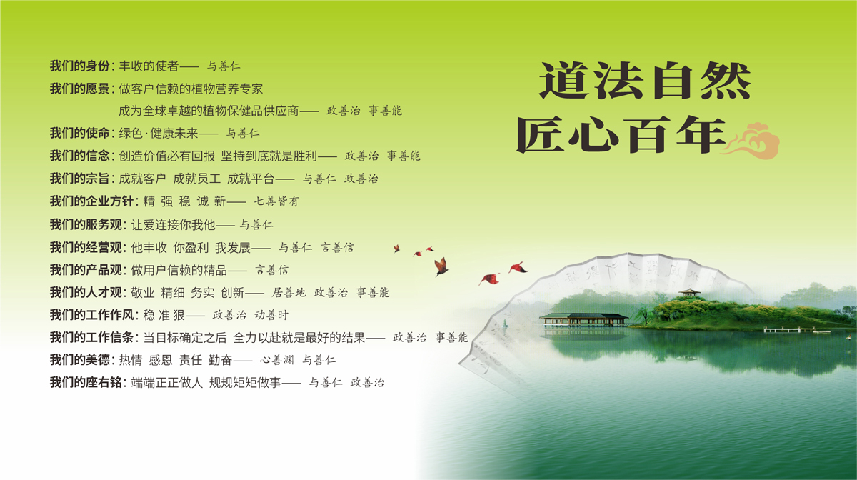 自1997年成立以來,中威致力于植物營養劑的研發、生產和應用推廣,做豐收的使者,遵循自然規律,堅守綠色·健康未來的使命追求,端端正正做人,規規矩矩做事,堅守“精、強、穩、誠、新”的企業方針,致力于打造百年企業。